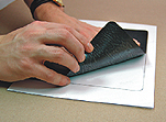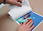 2 The ready printout is then secured by a special type of structural foil, which comes with the set. This will ensure durability and resistance to mechanical deterioration of the surface of the pad. The application of the protective foil has to be done very carefully, so that no air bubbles are trapped between the photo and the plastic foil. The laminating process itself should be done as follows: