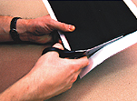 - Place the foil with the side which is PROTECTED by the paper facing towards the surface of the photo, ensuring that the part with the torn off narrow piece of paper does not stick to the photo itself.