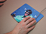 5 Using a sharp cutting tool or scissors we cut off the unnecessary parts of the photo. This way we finish making the personalised mouse pad "FotoMysz - PhotoMouse".